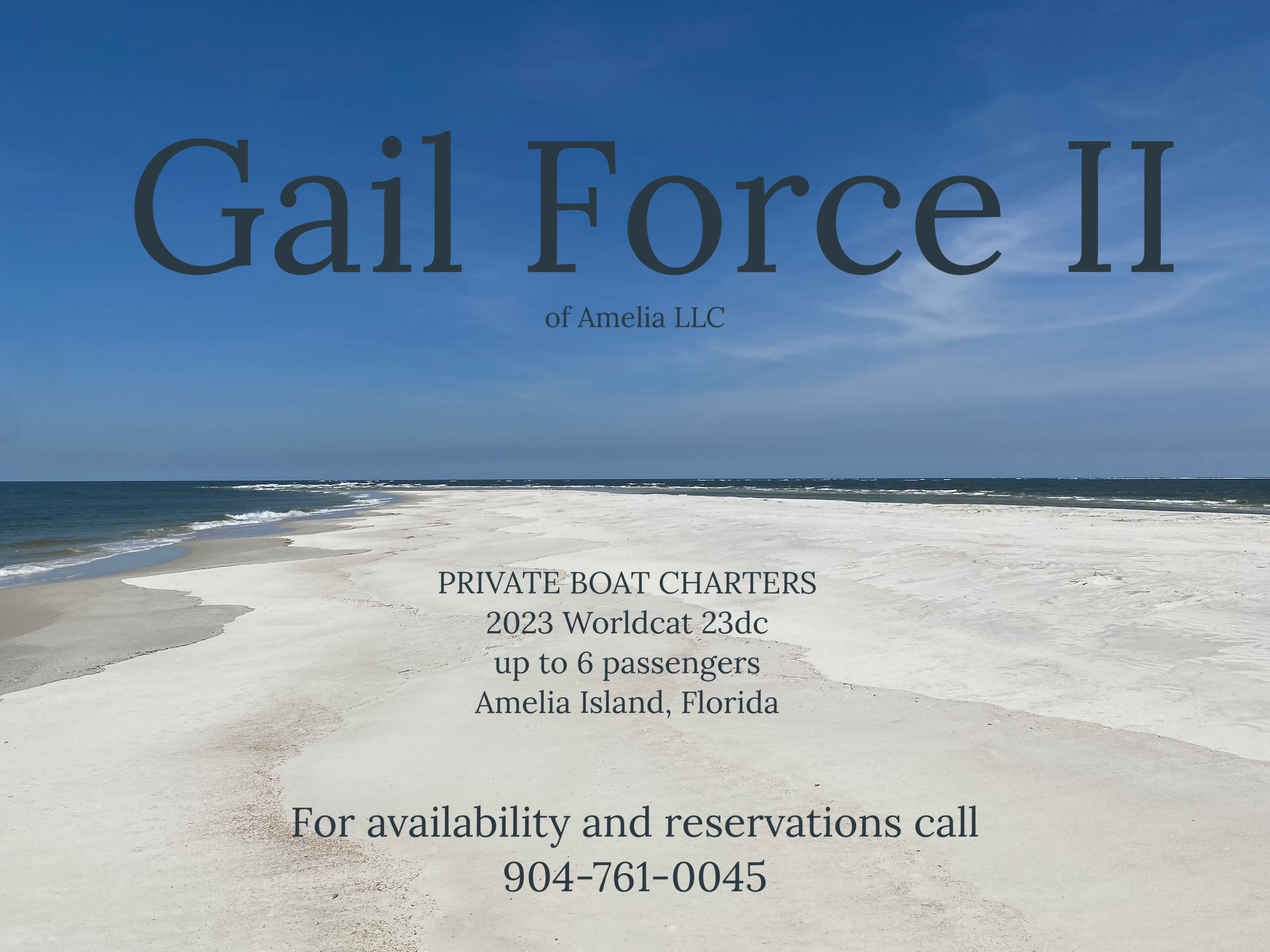 We are excited to offer private charter cruises on our new 2023 Worldcat 23 DC. We can accommodate up to 6 passengers plus crew. Design your own perfect day cruising the intercoastal waters of Amelia and Cumberland Islands. Imagine relaxing on a pristine sandbar with your family and friends. Watch the wild horses from the comfort of the Worldcat.